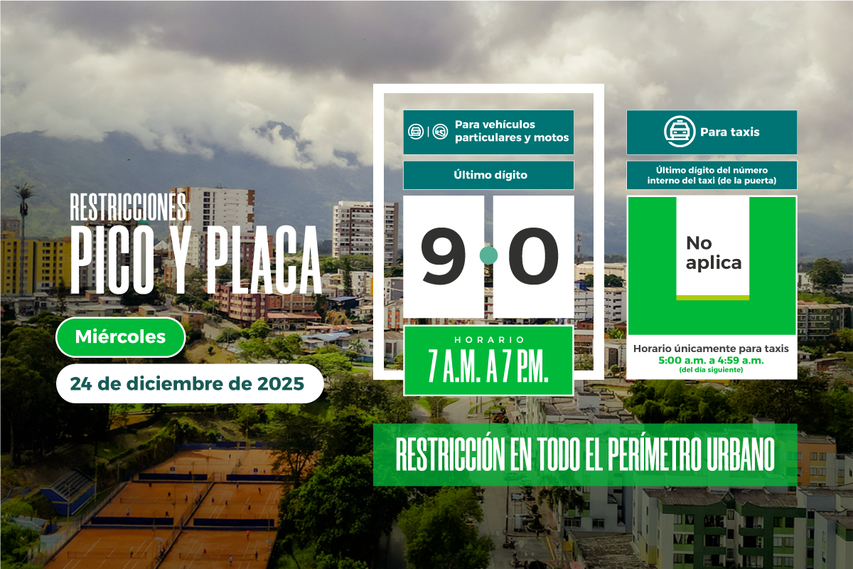 La medida de pico y placa en toda la ciudad, que rige desde el 1 de diciembre de 2025, se mantendrá en firme para vehículos particulares hoy 24 de diciembre entre las 7:00 a.m. y las 7:00 p.m., explicaron desde la Secretaría de Tránsito y Transporte.