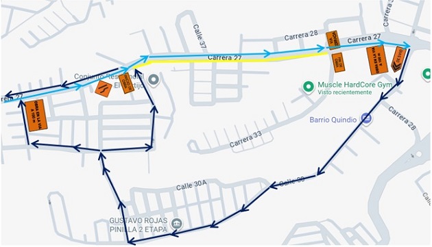 Los desplazamientos en sentido descendente (norte – sur), así como el acceso a los barrios aledaños, deberán realizarse a través del barrio Quindío, el cual operará como ruta alterna.