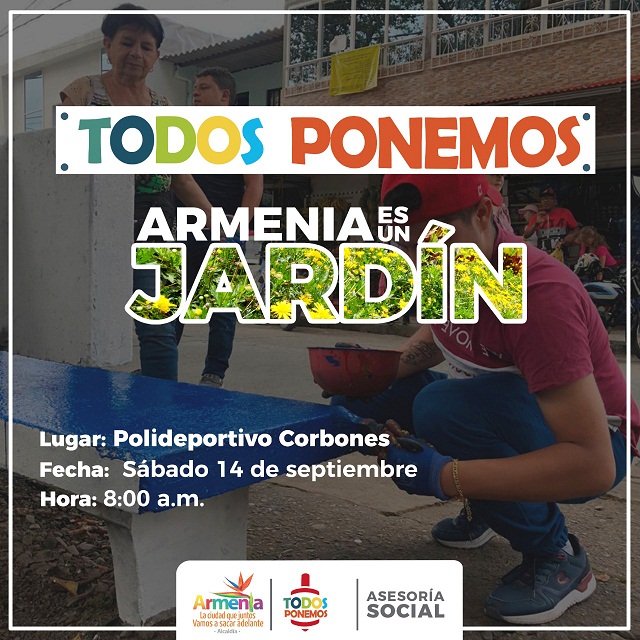 Este sábado 14 de septiembre se realizará una nueva jornada del programa institucional de la Alcaldía de Armenia “Todos Ponemos”, donde se intervendrán de manera simultánea diferentes espacios de la comuna 8 para el disfrute de la comunidad.