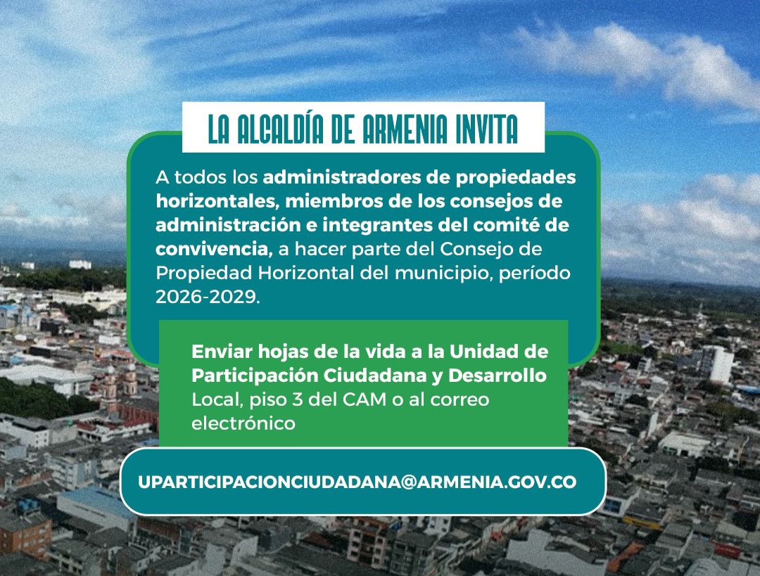 Con esta convocatoria, la ciudad avanza en la consolidación de un espacio decisorio donde se discuten asuntos que afectan a miles de familias que viven en propiedad horizontal, fortaleciendo la representación ciudadana y la participación activa en los procesos que involucran a las copropiedades de Armenia.
