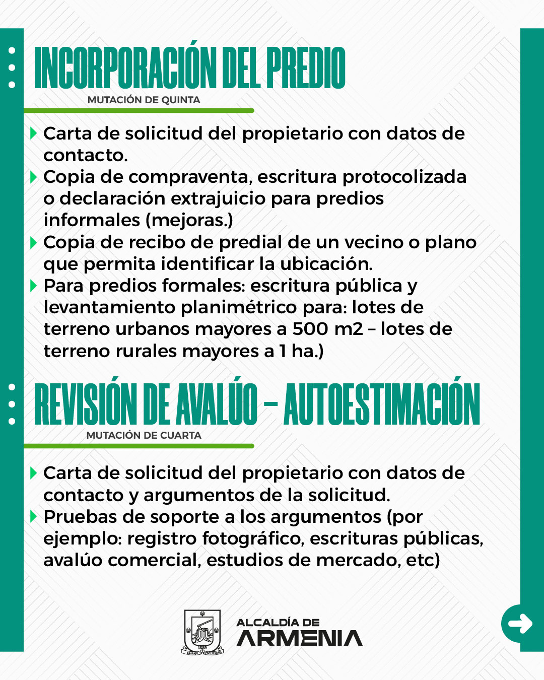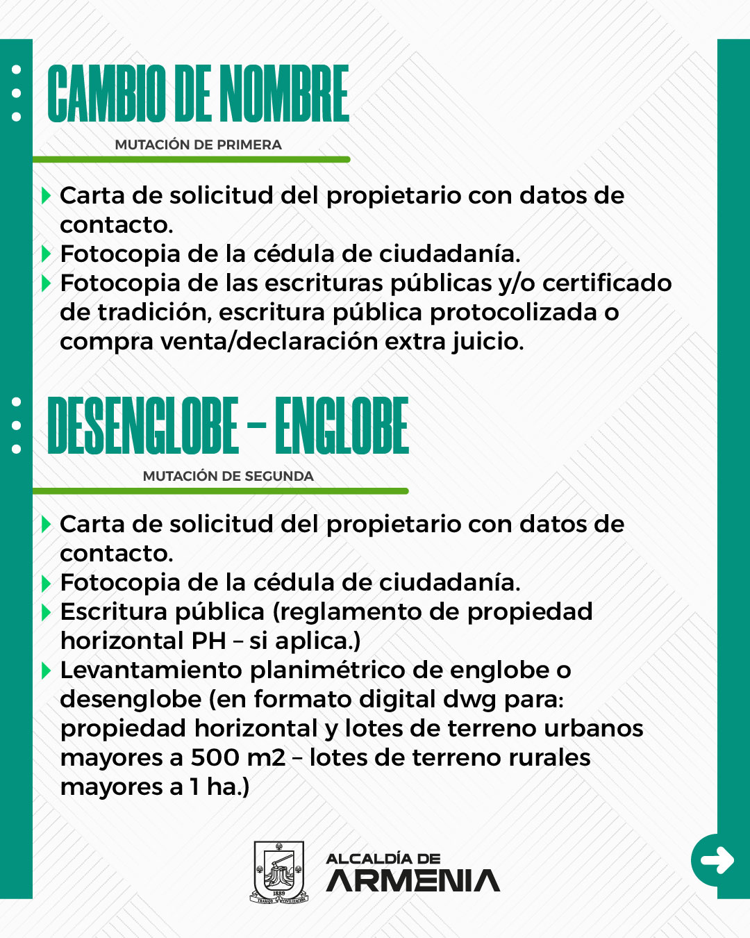 - • Decreto 254 del 22 de septiembre de 2021 "Por medio del cual se deroga el decreto municipal 188 del 25 de julio de 2021 y se establecen los requisitos para los trámites y servicios para la gestión catastral del municipio de Armenia"