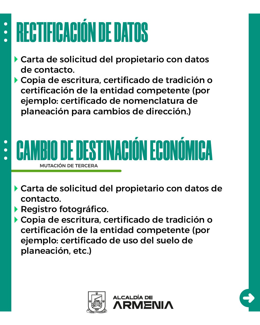 - • Decreto 254 del 22 de septiembre de 2021 "Por medio del cual se deroga el decreto municipal 188 del 25 de julio de 2021 y se establecen los requisitos para los trámites y servicios para la gestión catastral del municipio de Armenia"