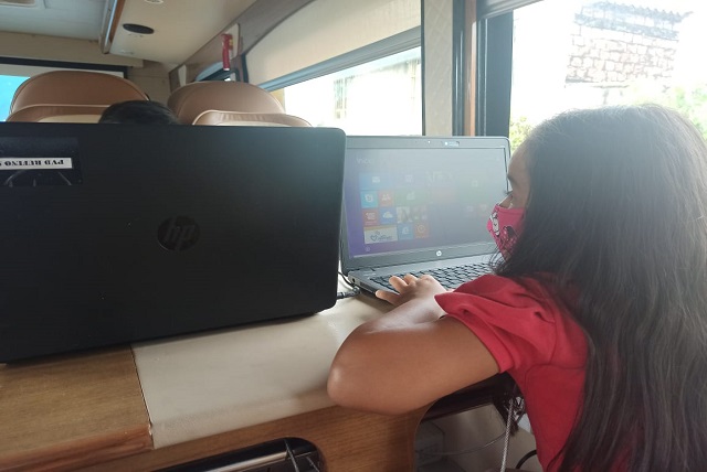 El vehículo de las tecnologías de la información y las comunicaciones de Armenia, llegó, ayer, al barrio Las Colinas. Recorrió, como ya es habitual en sus constantes viajes, las calles del sector elegido, llevándose las miradas de asombro y curiosidad de sus habitantes.