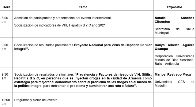 Por medio de este evento, la dependencia espera socializar todas las labores realizadas por la Fundación Antioqueña de Infectología y la Universidad CES de Medellín, que en este año brindaron servicios de educación y detección temprana de ITS a poblaciones vulnerables del municipio.